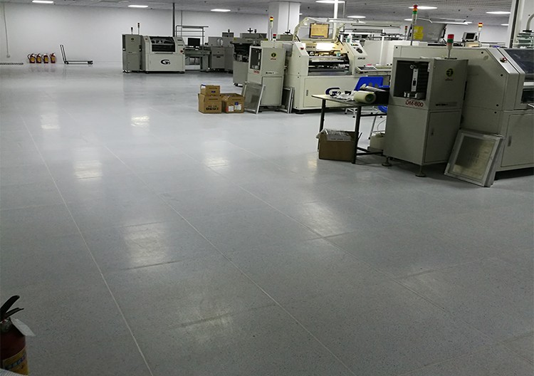深圳松崗某電子廠PVC防靜電地板工程,采用600x600x2.0mm規格的白色pvc防靜電地板,防靜電值指數10的4-6次方,通過使用方的嚴格測試,防靜電值、耐磨度、防火性能等各項指標均符合使用方的要求,工程總面積1800平米,整個工期為3天。