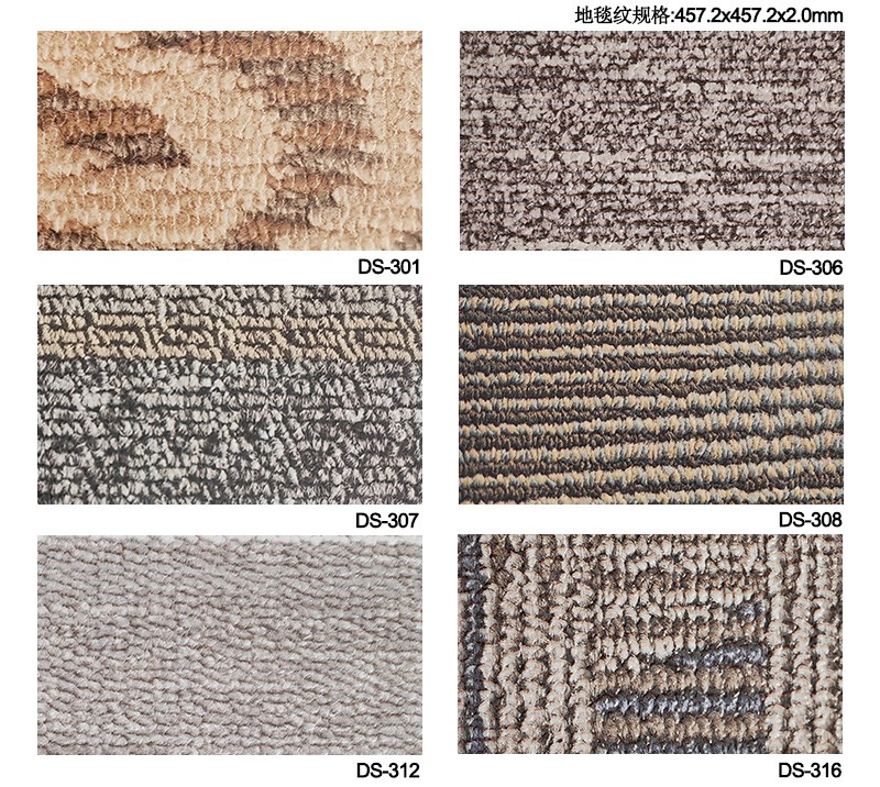 片材PVC地板規格(Dimension):457.2x457.2mm(地毯紋和石紋) 915.8x153.5mm(木紋)